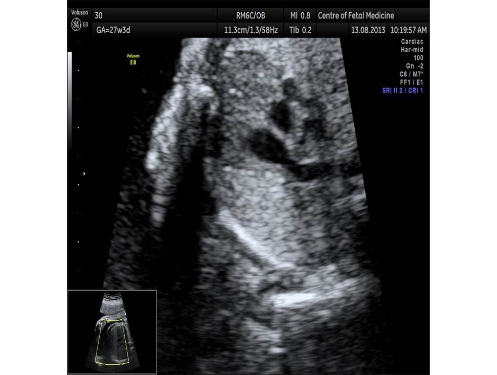 Проанализируйте изображения плода в 27 недель, установите диагноз и дальнейшую тактику ведения беременности