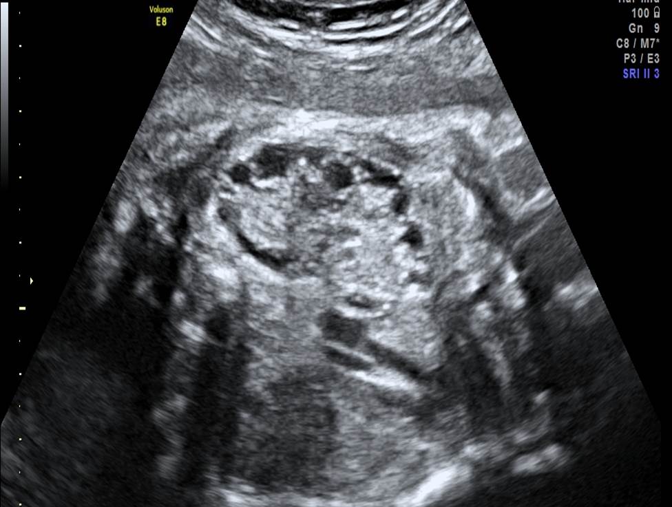 Проанализируйте изображения плода женского пола в 31 неделю, установите диагноз и дальнейшую тактику ведения беременности